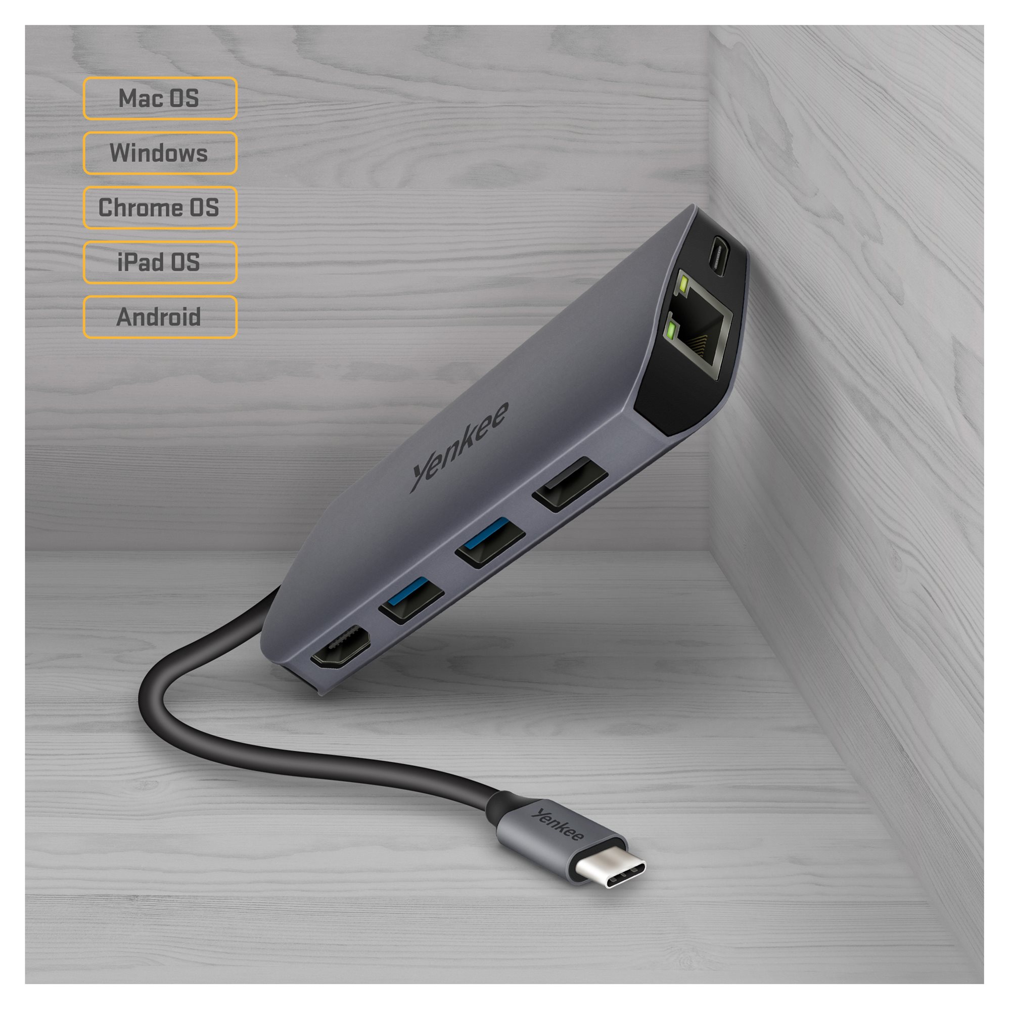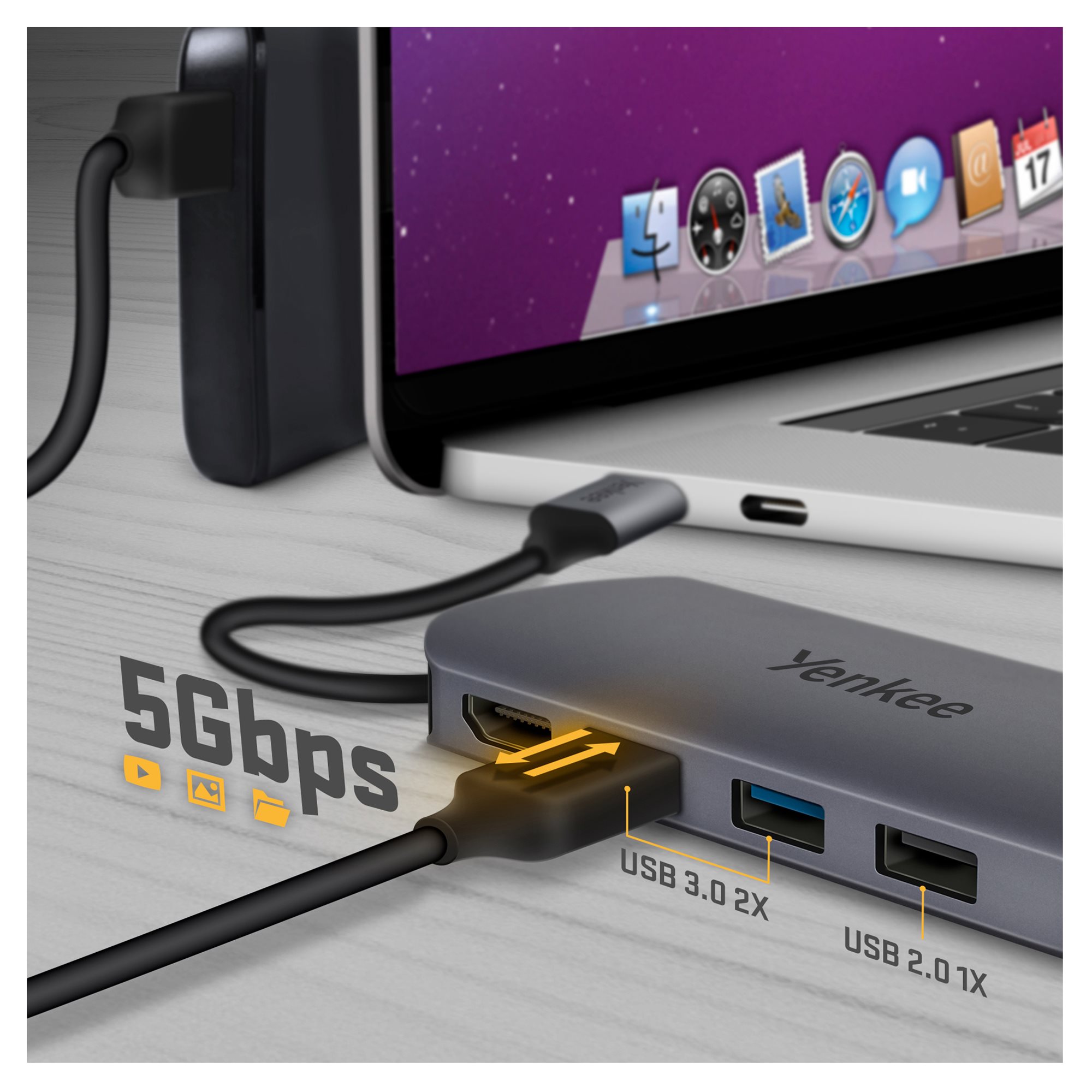 Povežite svoju omiljenu tastaturu ili miša sa tri USB-A konektora. Dva od njih su direktno klase 3.0, što za vas znači brzinu prenosa podataka do 5Gbps. Zahvaljujući tome, bez problema ćete povezati vašu flešku ili eksterne diskove, a istovremeno ću raditi sa njima izuzetno brzo. Mogu da se nosim sa bilo kojim sistemom. Bez obzira da li ste ljubitelj macOS -a, iPadOS -a ili Windows -a, vaša elektronika će me uvek razumeti.