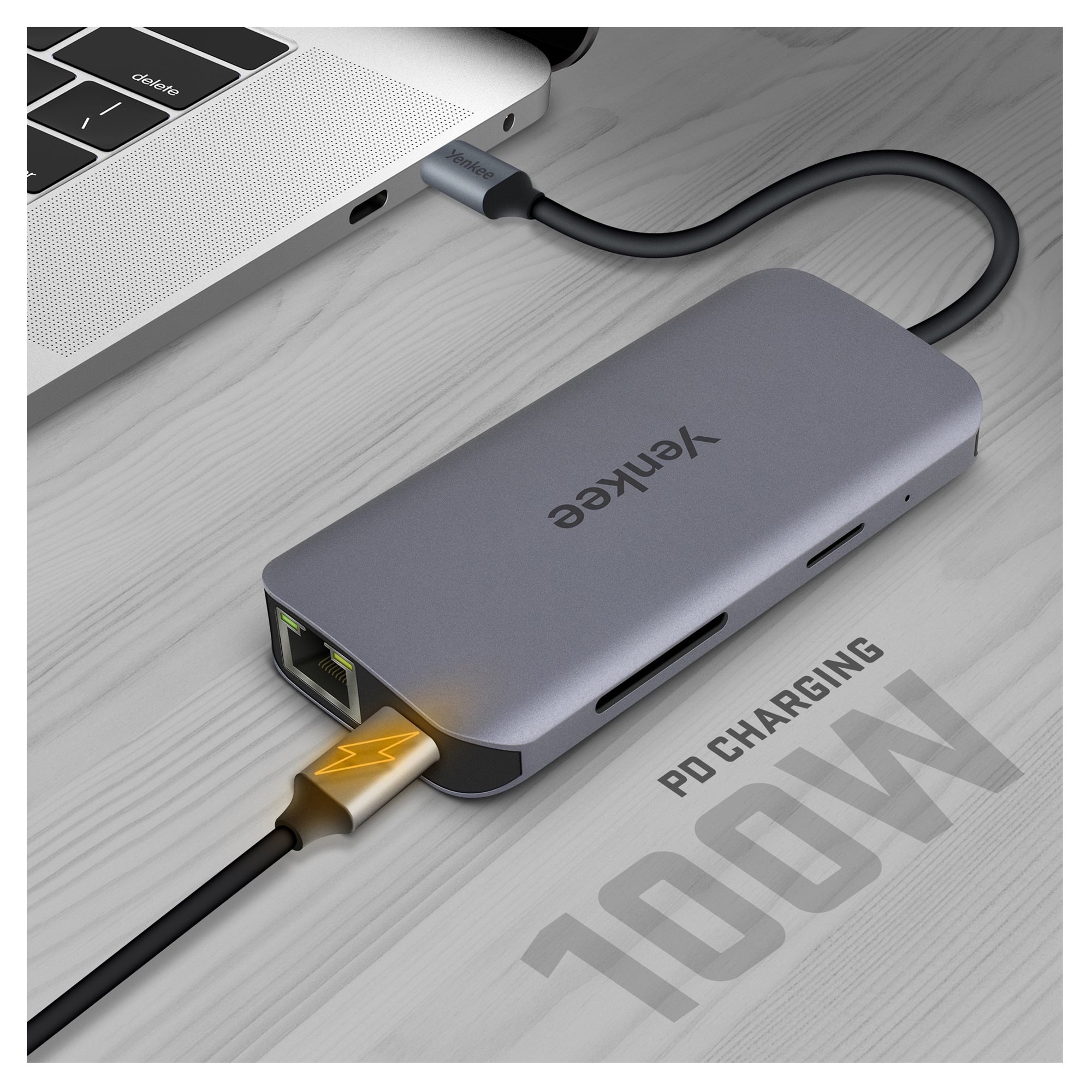 Ja sam univerzalni USB-C čvorište koje proširuje vaš notebook računar sa do 8 dodatnih konektora. Mogu da koristim tehnologiju Power Delivery 3.0 sa kojom do 100W energije ulazi u vaš laptop. U saradnji sa vrhunskim USB-C portom 3.2 gen. 2, sigurni ste da će se vaš uređaj brzo i najvažnije trajno napuniti. Sve to u kompaktnom metalnom kućištu koje je idealno za putovanja.