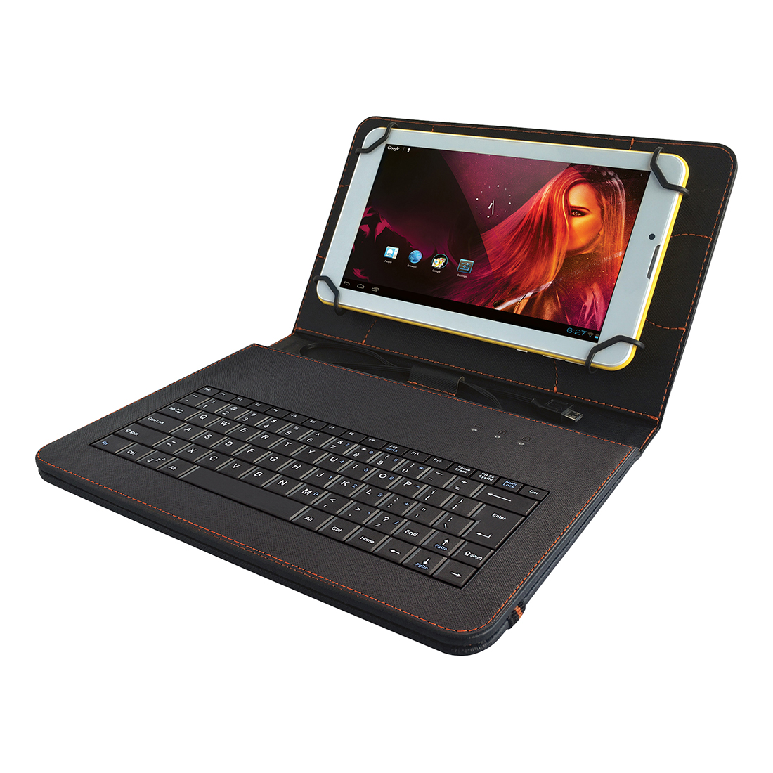 Kućište je napravljeno od kvalitetnih sintetičkih materijala koi su udobni na dodir. Integrisan microUSB kabl za lako povezivanje vašeg tableta sa tastaturom. Kombinacija postolja i tastature čini rad na vašem tabletu udobnijem, kako kući tako i na poslu.