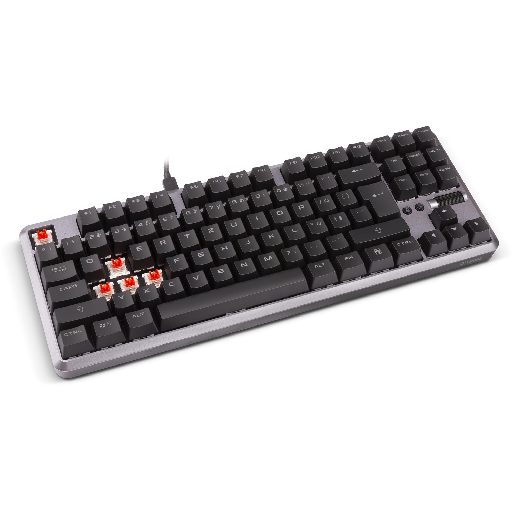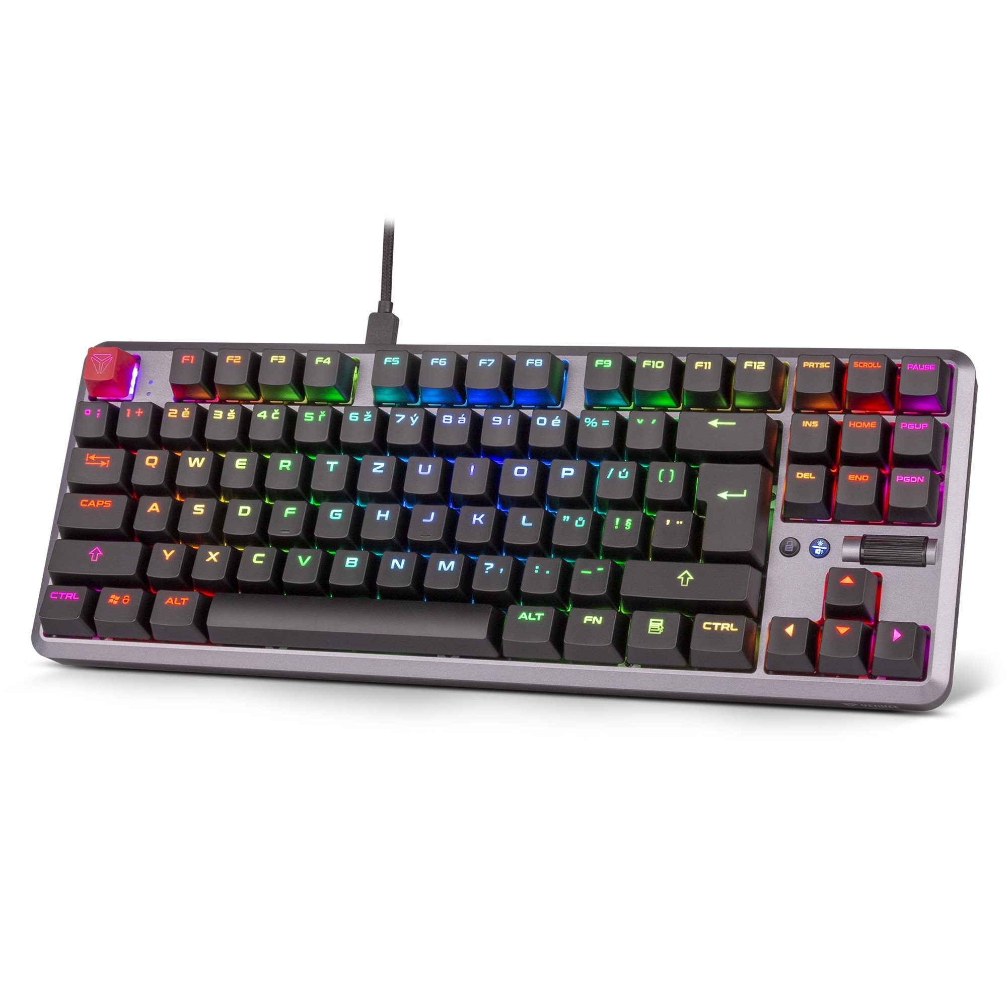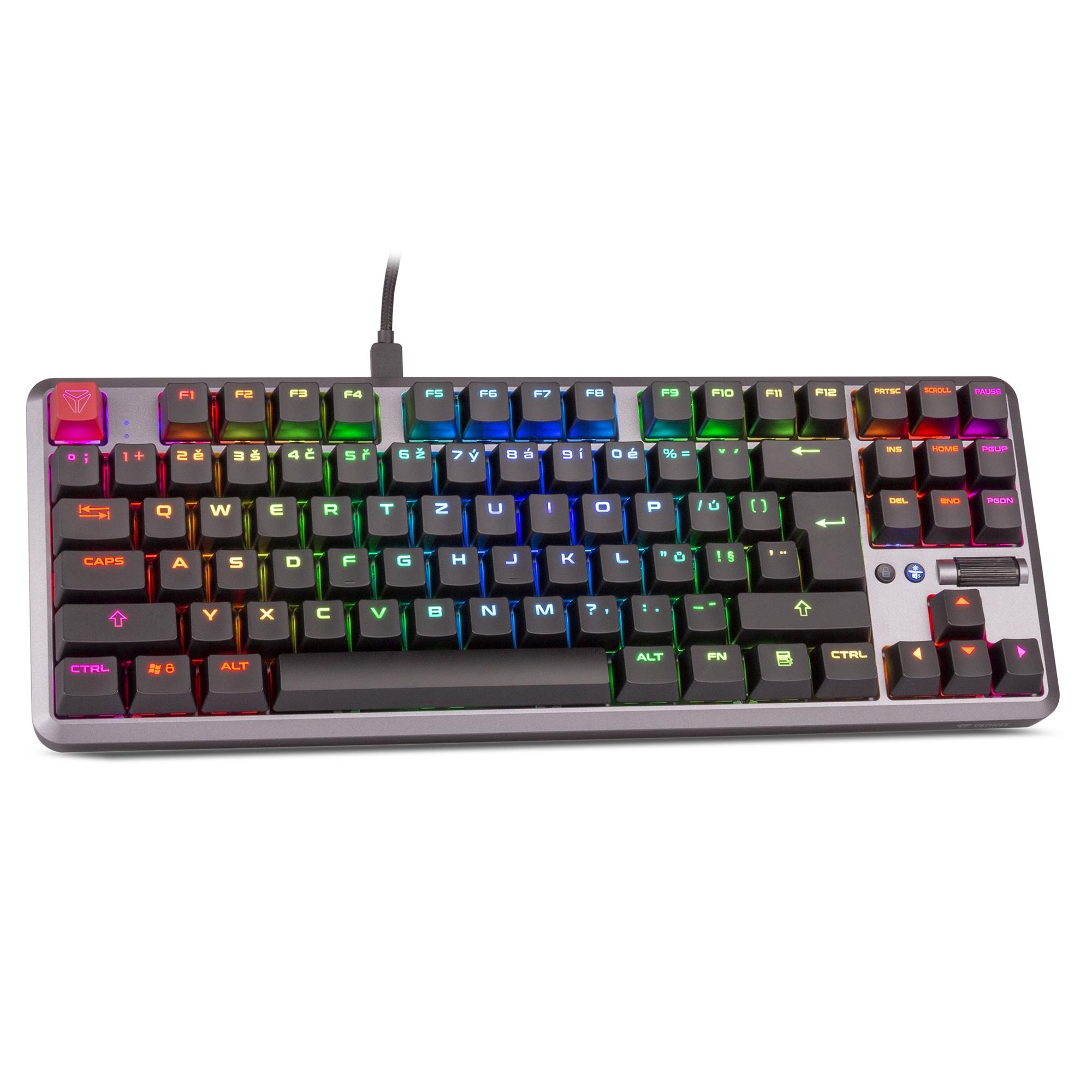 Moje kompaktno telo bez numeričke tastature neće nepotrebno zauzimati prostor na vašem stolu. Za vas to znači još više prostora za manipulaciju mišem. Isporučeni izdržljivi pleteni kabl sa USB-C konektorom se koristi za povezivanje sa vašom mašinom za igre kako bi se postigao izuzetno brz odziv tastature.