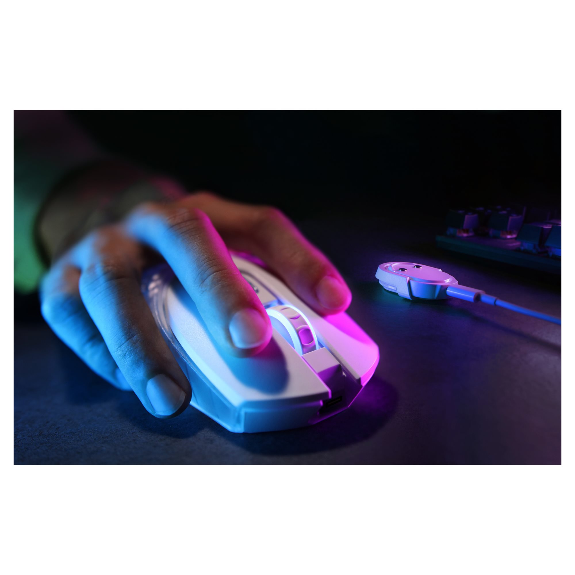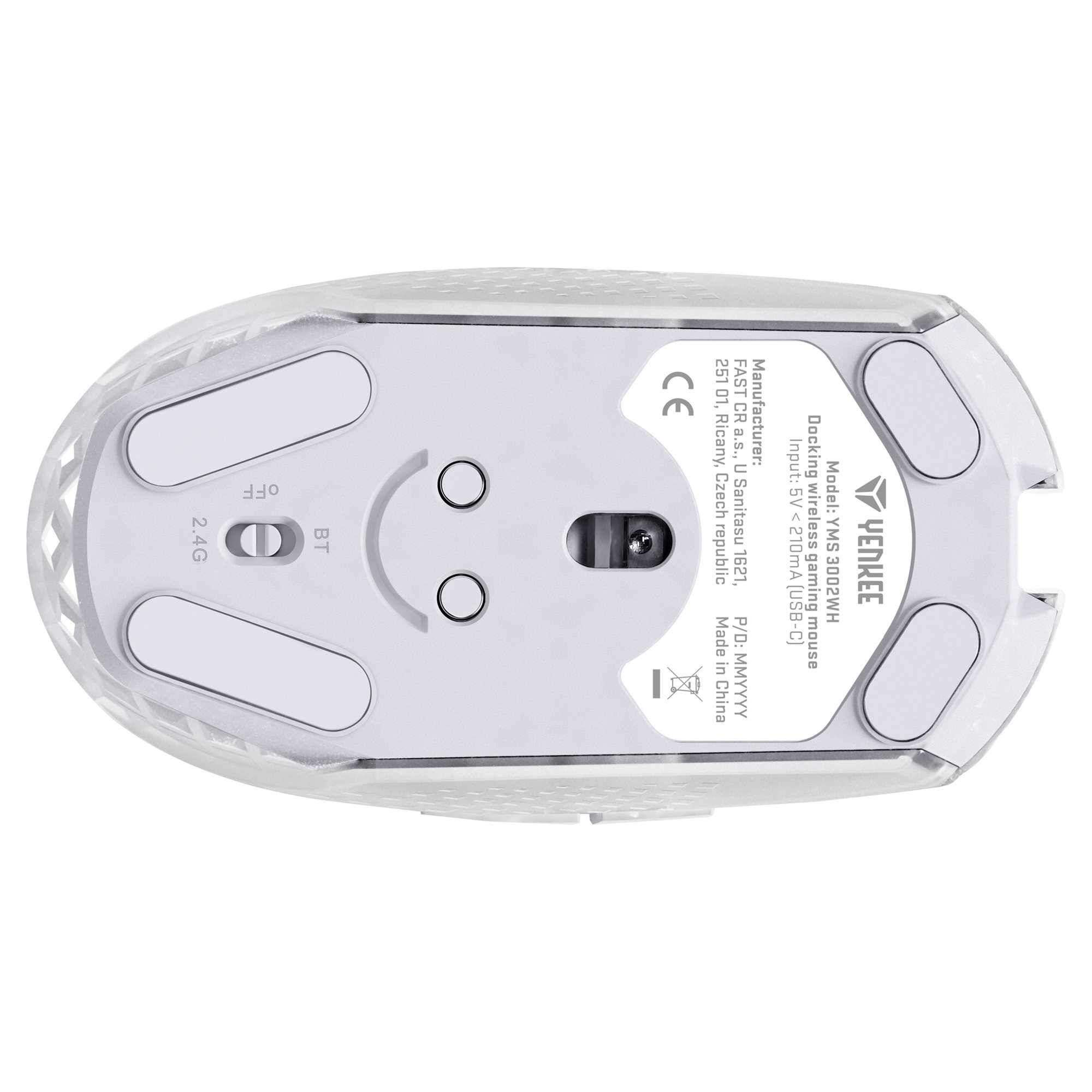 Integrisana YMS 3002BK baterija miša ima kapacitet od 500 mAh i životni vek od oko 50 radnih sati. Samo ga stavite na magnetnu priključnu stanicu nakon upotrebe za punjenje koje je brže nego sa konvencionalnim kablom. Stanica se može koristiti i kao predajnik na 2,4 GHz, sa odvojivom podlogom na dnu koja se može pričvrstiti na radnu površinu ili zid. Tako možete pričvrstiti priključnu stanicu na idealno mesto i ponovo odvojiti ako je potrebno. Ako želite da koristite miš na terenu, ne morate da nosite stanicu sa sobom. Takođe možete da koristite USB-C kabl za punjenje i klasični Bluetooth za uparivanje.