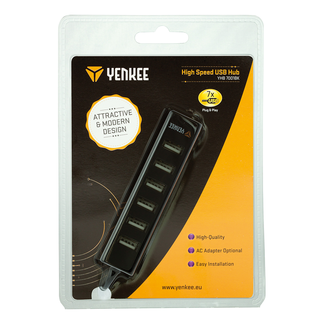 Visokokvalitetno USB čvorište sa 7 porta omogućava instaliranje i korišćenje više uređaja istovremeno, npr. miš, tastatura i štampač. Instaliranje je veoma jednostavno. Samo ga priključite u USB port na računaru. Napaja se preko USB-a, ali možete koristiti i eksterni adapter ako je potrebno.