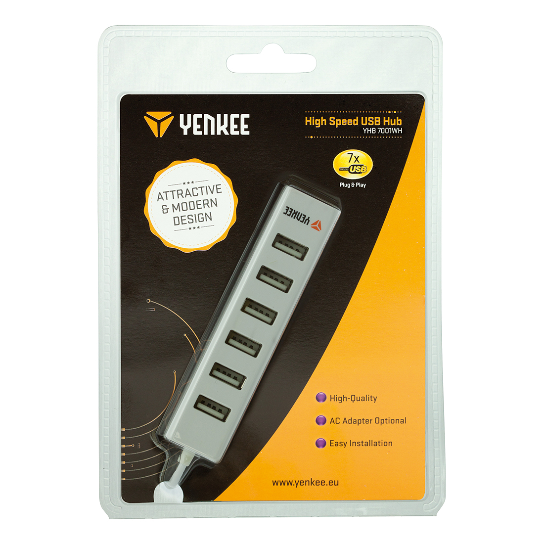 Visokokvalitetno USB čvorište sa 7 porta omogućava instaliranje i korišćenje više uređaja istovremeno, npr. miš, tastatura i štampač. Instaliranje je veoma jednostavno. Samo ga priključite u USB port na računaru. Napaja se preko USB-a, ali možete koristiti i eksterni adapter ako je potrebno.