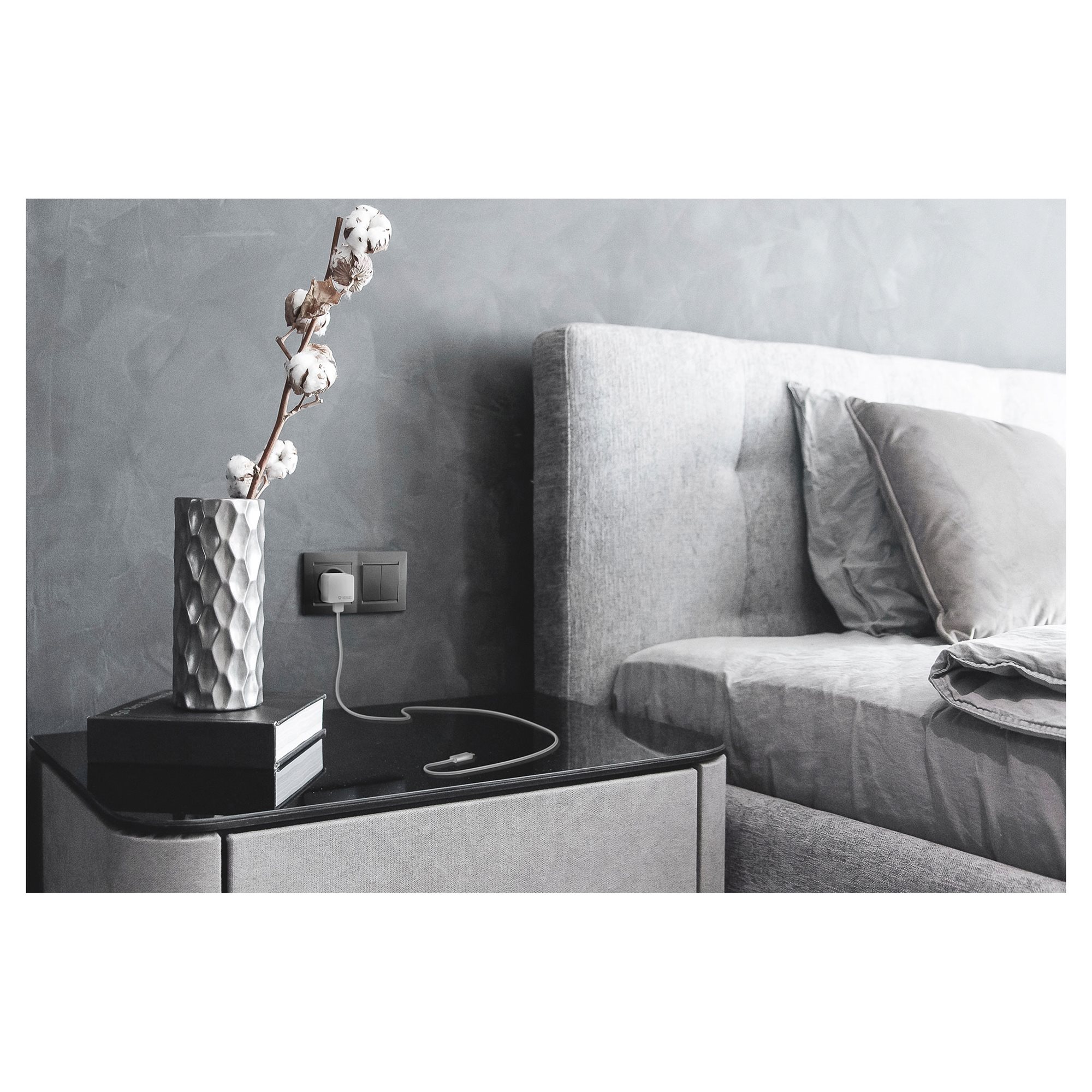 Kompaktan USB punjač s izlaznom snagom od 2,1A. Zahvaljujući njegovim specifičnim oblikom, punjač se sjedinjuje s vašim interijerom stana i lako se na primere uklapa na vašem noćnom stočiću. Za maksimalnu vašu bezbednost kao i bezbednost vaše uređaja, punjač ima višestruke zaštite od prekomernog napona, preopterećenja, spaljivanja i kratkog spajanja.